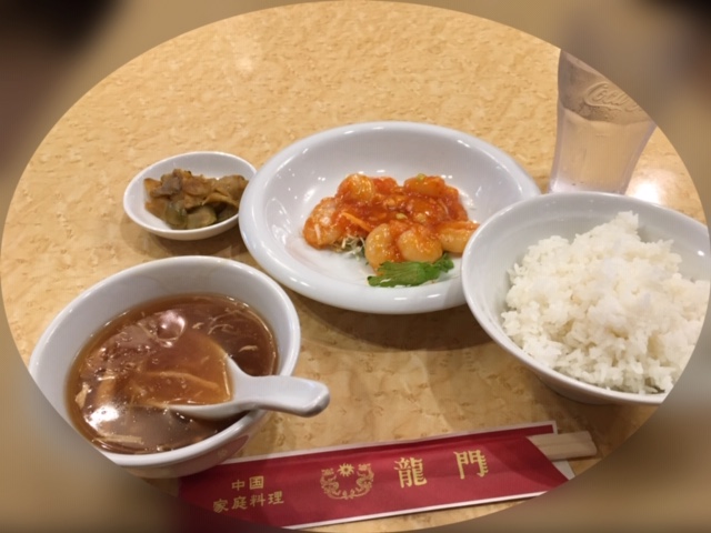 私が頼んだのはエビチリ定食(杏仁豆腐&小籠包付き)